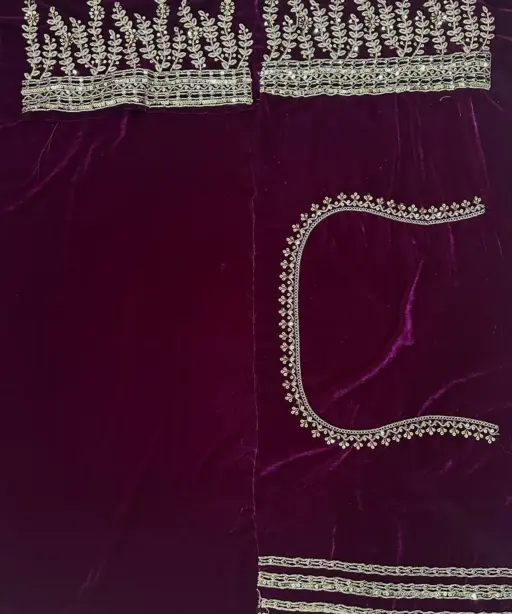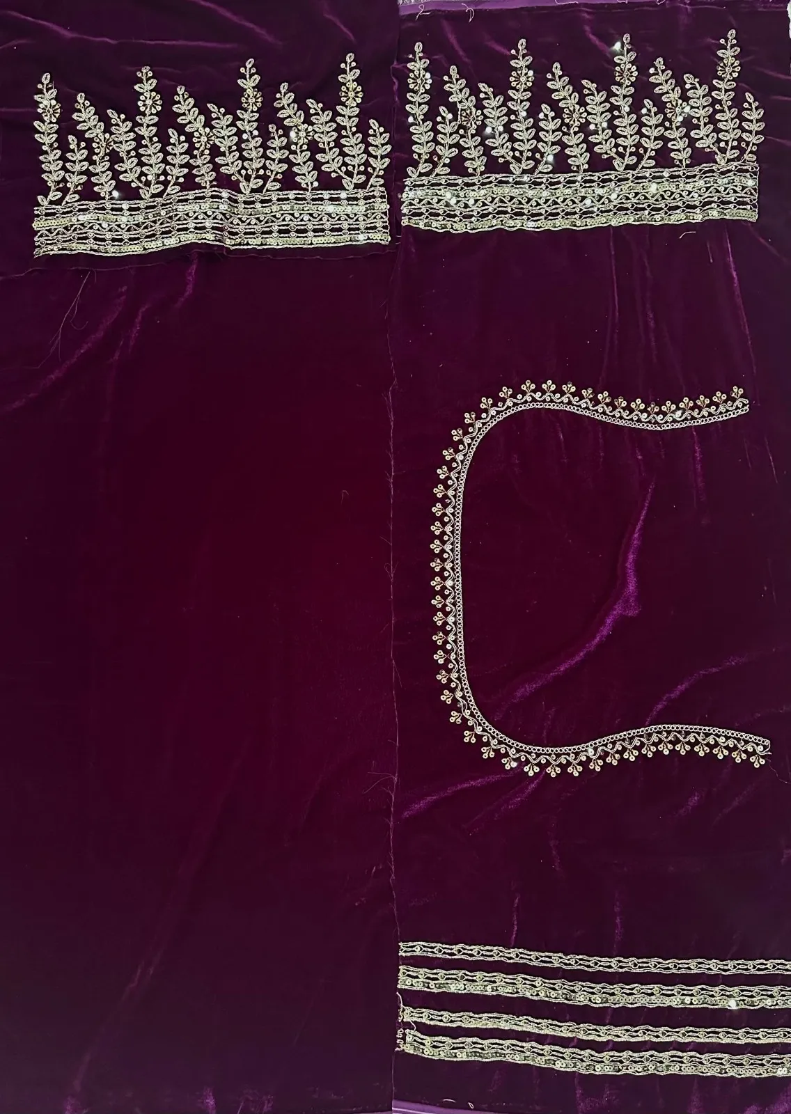 | Blouse | 9000 velvet blouse with sequins & dori work ( unstitch ) |