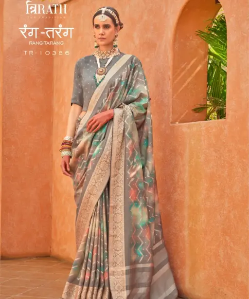Pv Silk Festive Wear Ethnic Saree Trirath Rang Tarang