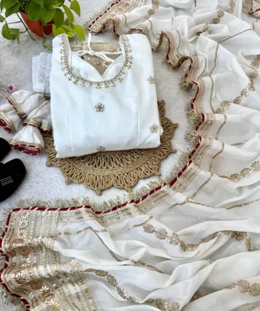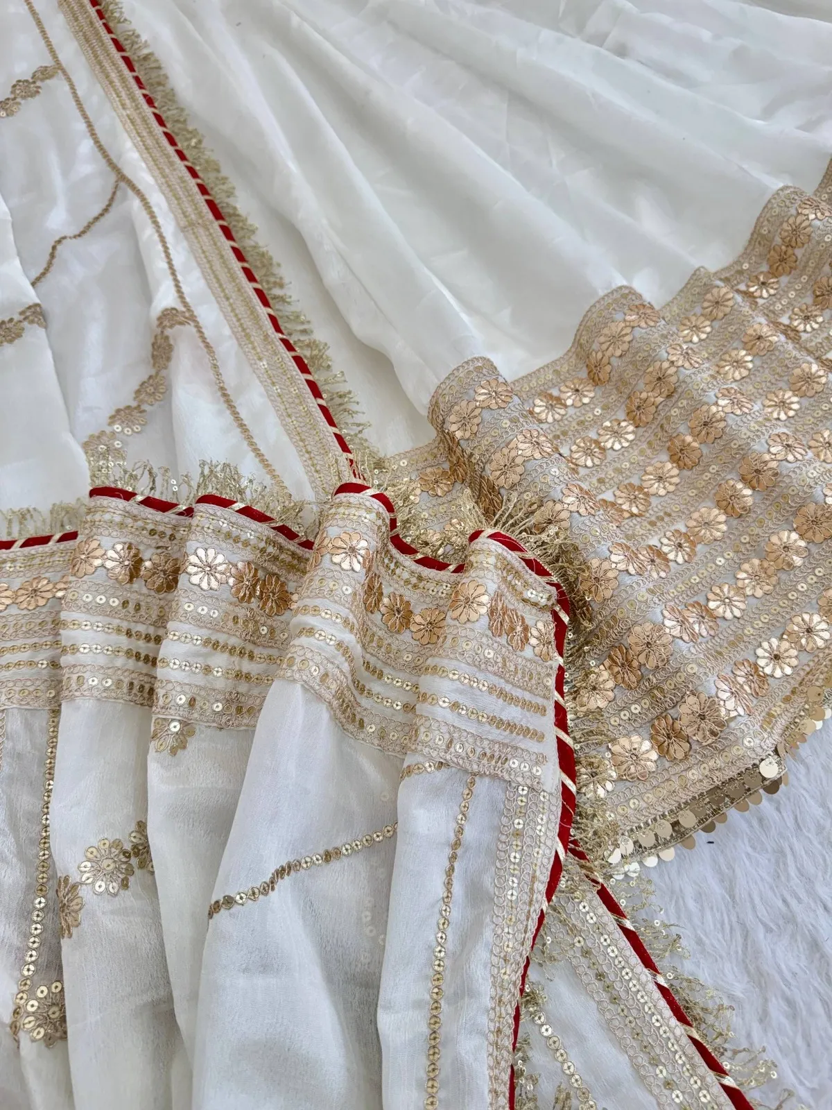 | Dupatta | Chinon Silk With Coding Embroidery with Gotta papar Pallu Heavy Rich Lace Boders |