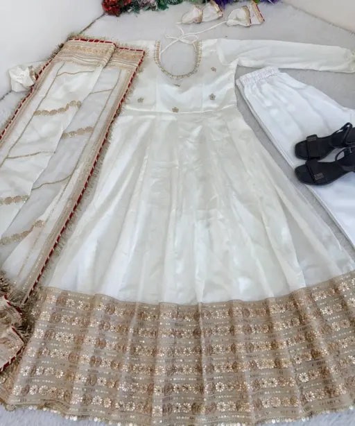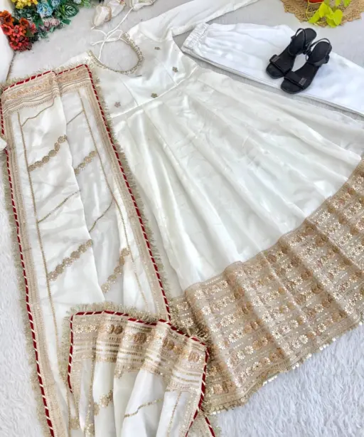 Ramzan Eid Special Cream Anarkali Dress | Eid Suits