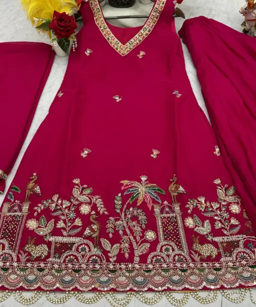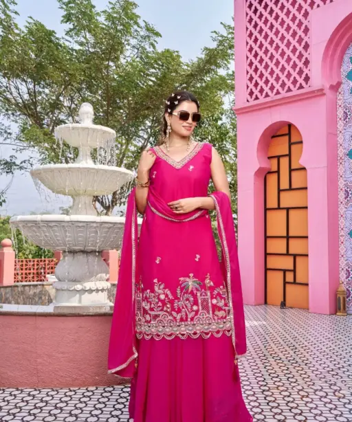 Rani Color Reception Special Beads Work Kurti Set