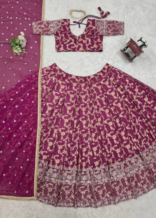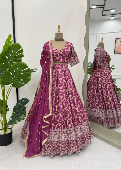 | Lehenga | Jacquard thread with Sequence Semi-Stitch with cancan with canvas Pata |