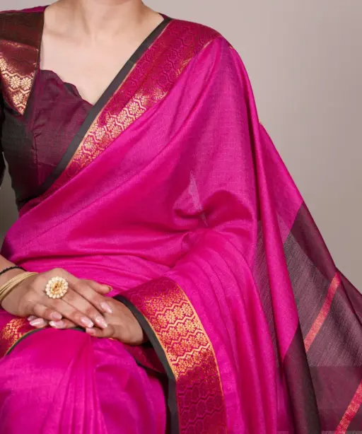 Rani Pink Zari Border Sari South Style