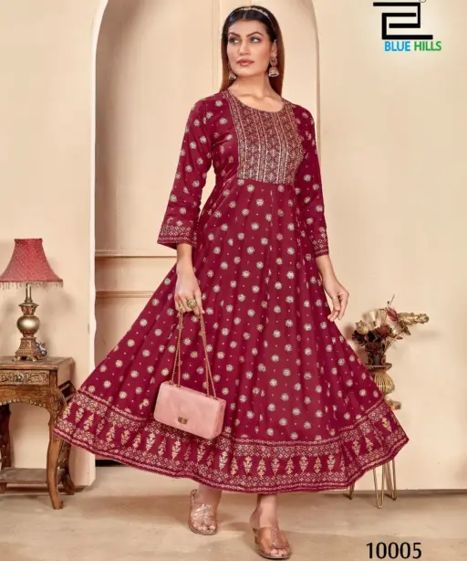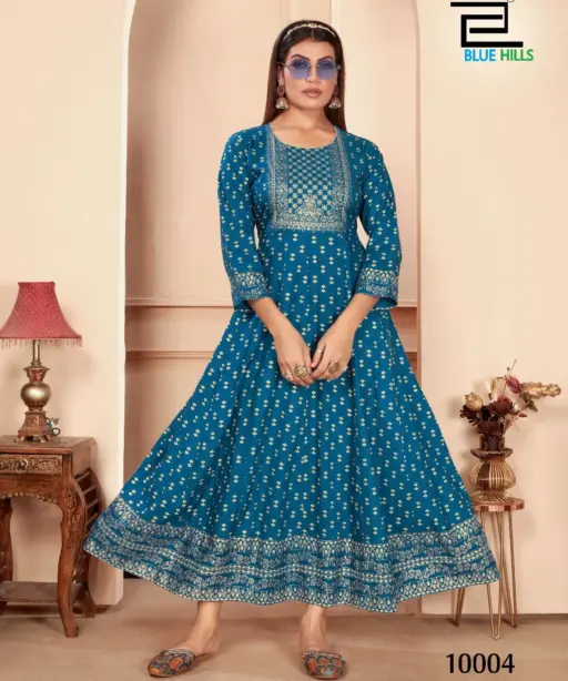 Rayon Printed Kurti Gown Office Wear