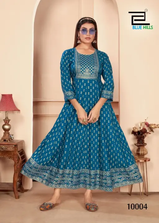 Rayon Printed Kurti Gown Office Wear