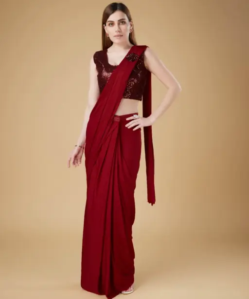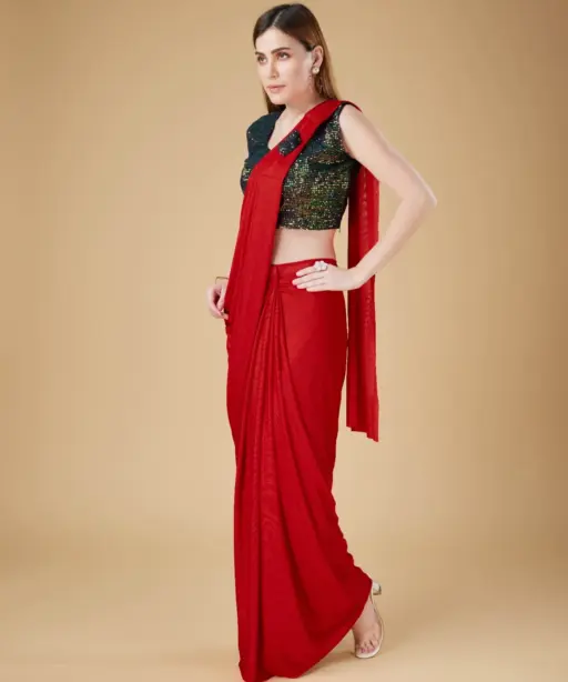 Ready To Wear Heavy Embroidery Saree With Stitched Blouse Ethnic