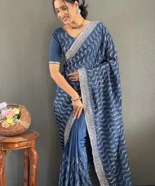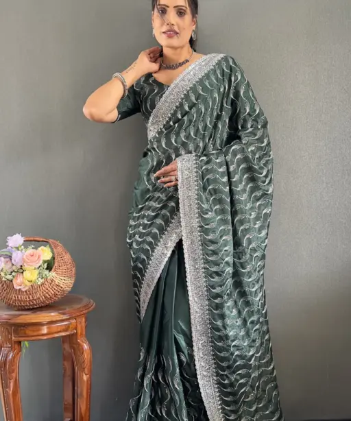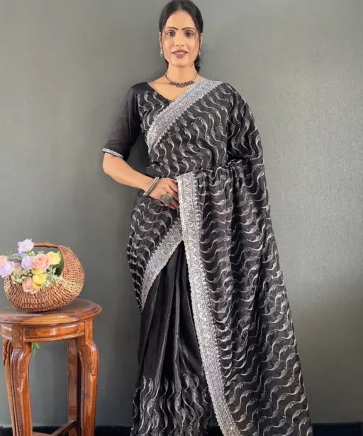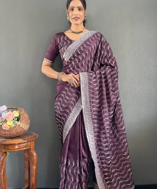 Ready To Wear Wedding Saree With Heavy Embroidery And Sequins Work