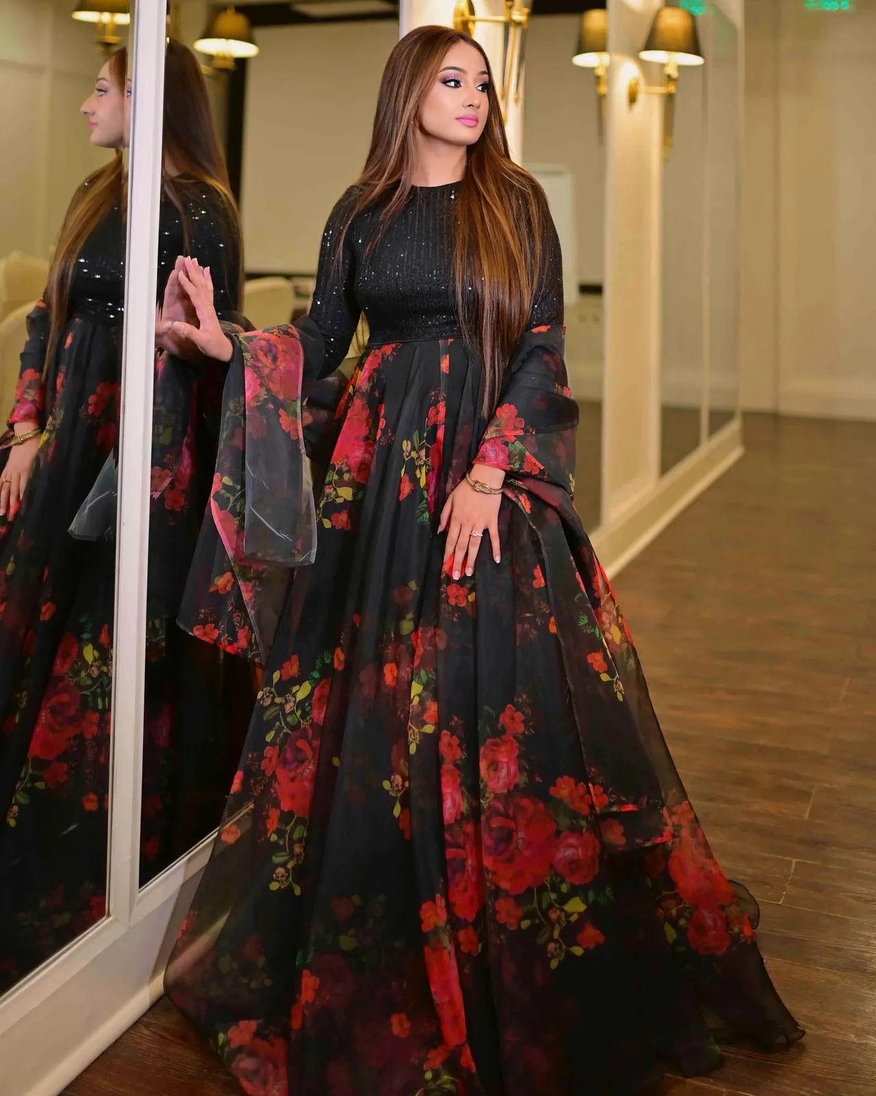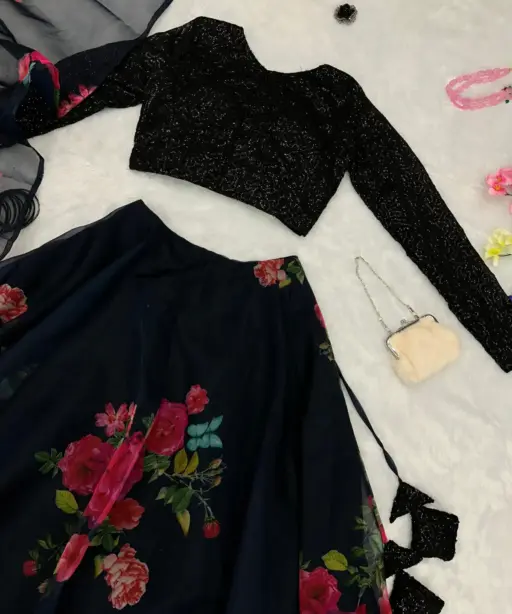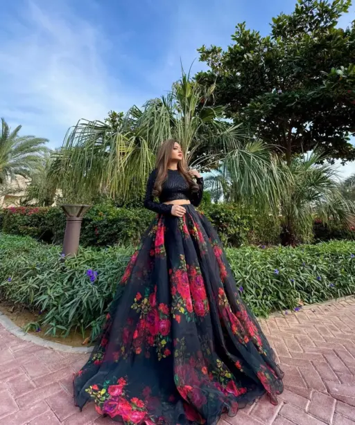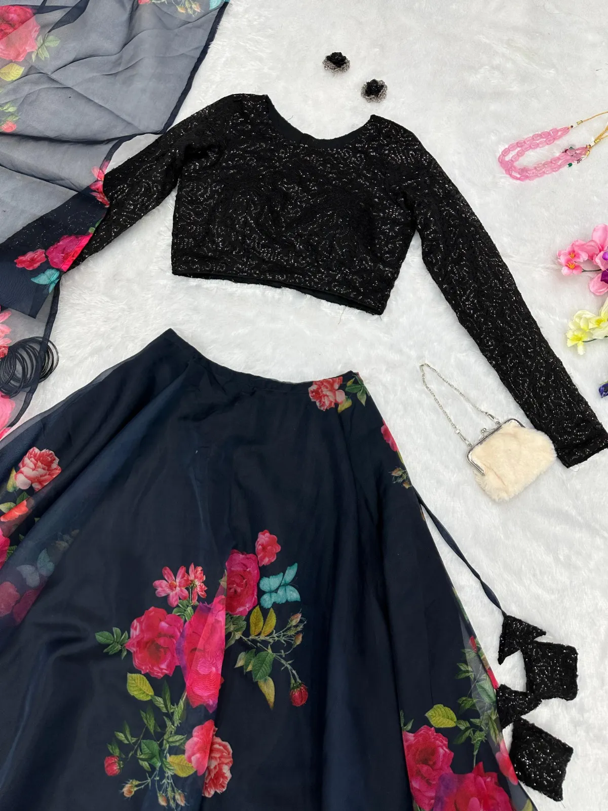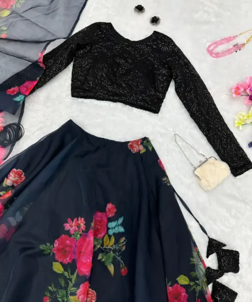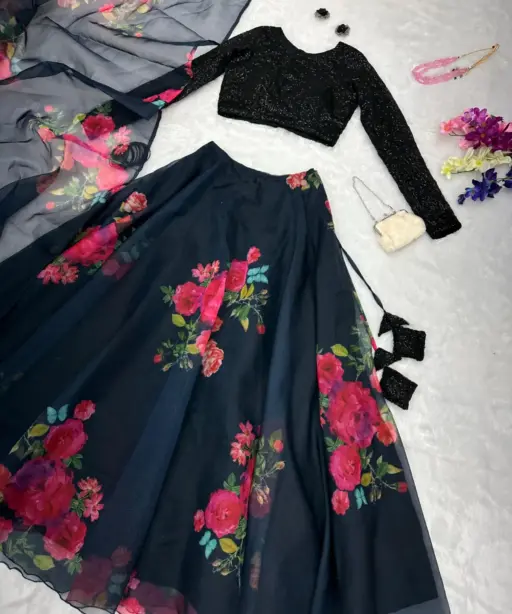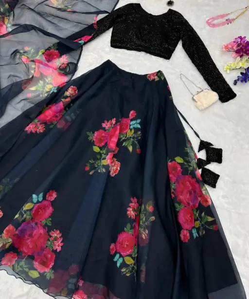 | Lehenga | Pure organza silk floral printed lehnga. 8mtr flair lehnga with canvas Patta |