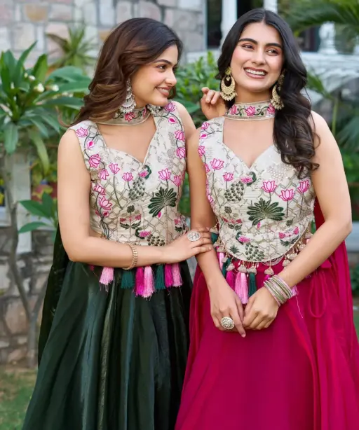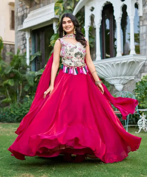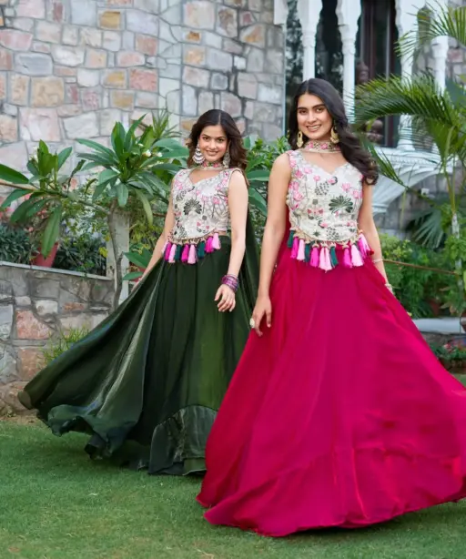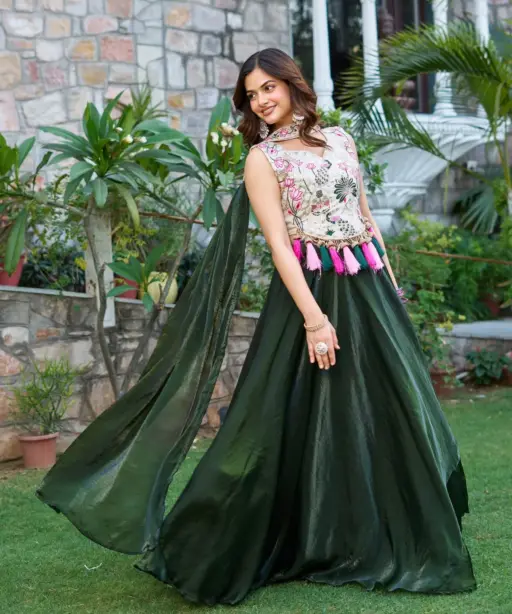 | Lehenga | Pure Fendy Silk with micro cotton inner, 9 mtr flair, full-stitched, attached canvas and cancan |