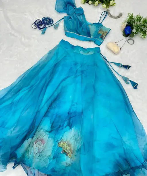 | Lehenga | Pure Organza Silk Digital Printed Lehenga with Canvas Patta (8 MTR Flair) |