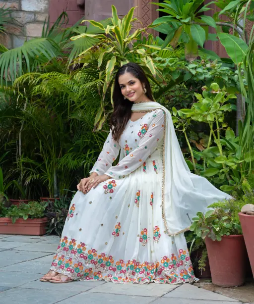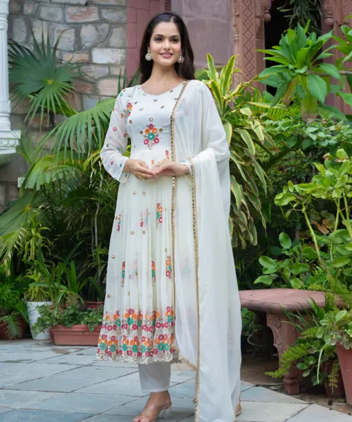 Faux Georgette With Full Heavy Embroidery Sequence Work With Sleeves