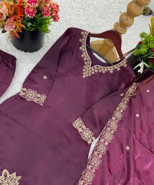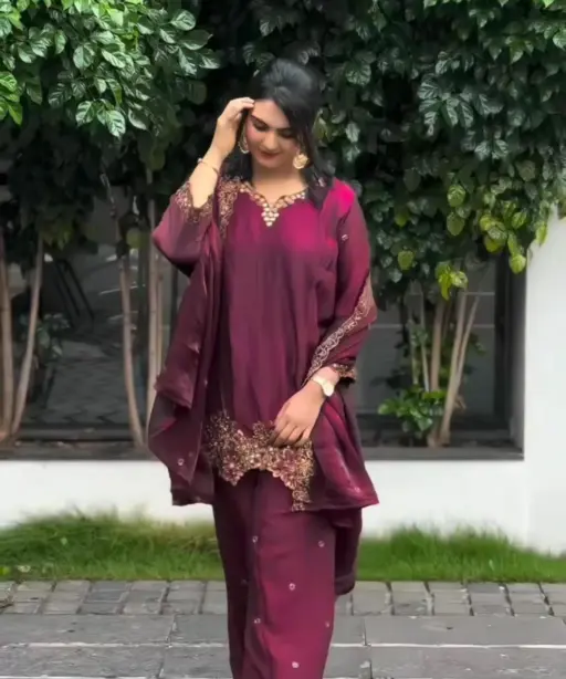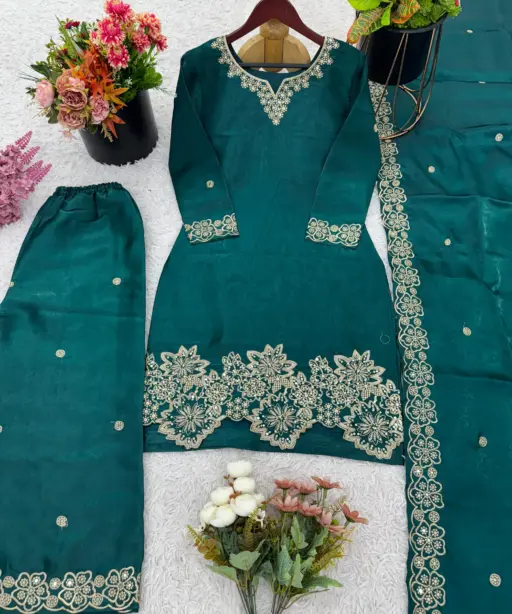 | Top | Pure Jimmy Choo Silk with Heavy Embroidery Sequence Work, Full Sleeve, Inner: Heavy Micro Cotton, Length 38-39 inches |