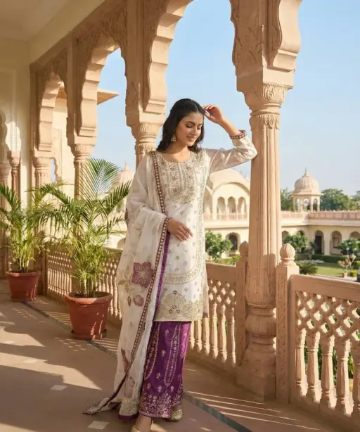 Readymade Pakistani Flared plazzo kurta Set purple