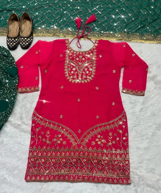 | Top | Faux Georgette with Heavy Embroidery and 5mm Sequence Work, Sleeves Included |