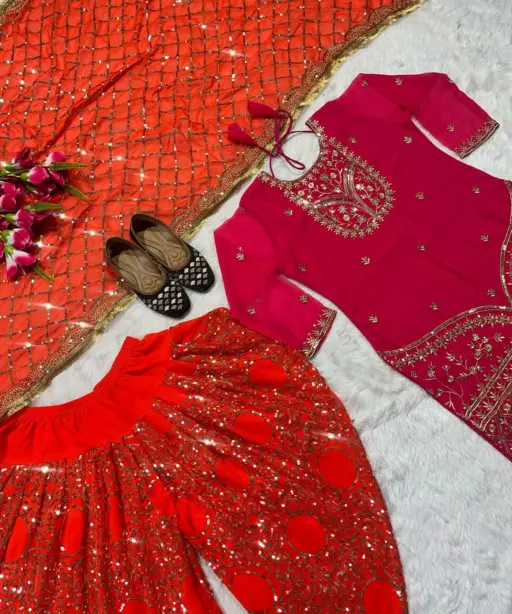 | Dupatta | Faux Georgette with Embroidery and 5mm Sequence Work |