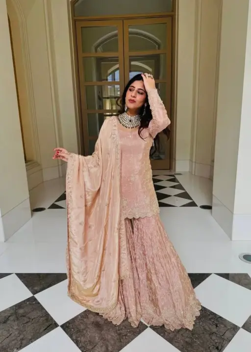 Readymade Peach Sharara Dress for Eid
