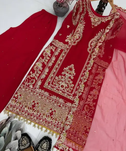 | Top | HEAVY FUAX GEORGETTE HEAVY EMBROIDERY CHINE SEQUENCES BOTH SIDE WORK WITH FANCY LATKAN top Length 45 Inches |