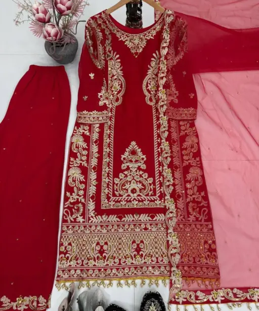 Readymade Suits Red Embroidery Dress
