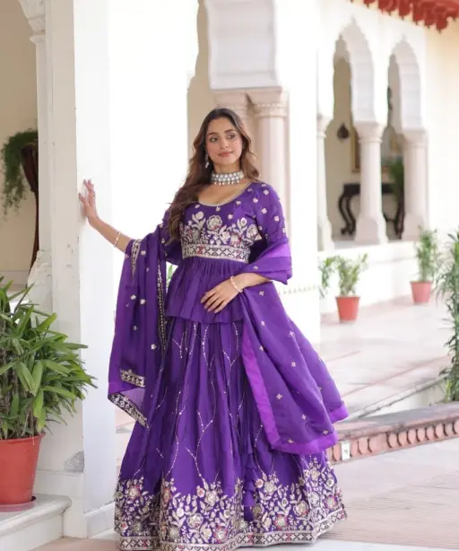 | Lehenga | Gold Crush with Multi Thread Embroidery Zari Sequins-Work Length: – 42, Waist: – 42, Stitched with Canvas Patta, – 3 Mtr |