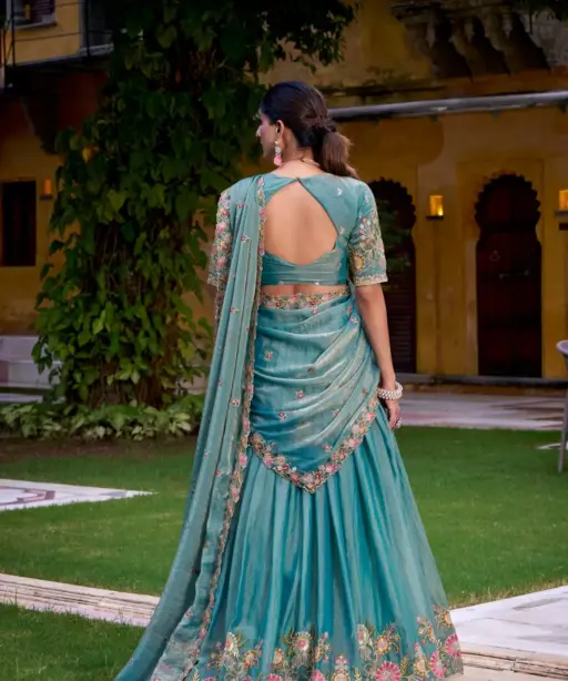 LehengaZari Shimmer with Sequins & Thread Embroidery Work, Stitched with Canvas & Can Can, Inner Micro Cotton, Length 41, Flair 3.50 Meter, Waist Support up to 42, Drawstring with Zip