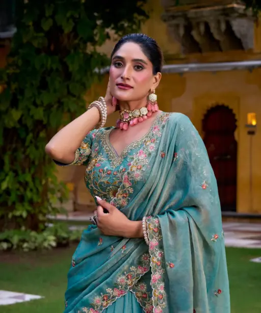 BlouseZari Shimmer with Sequins & Thread Embroidery Work (Unstitched, Length 1 Meter)
