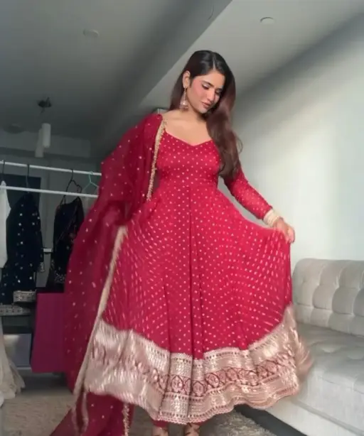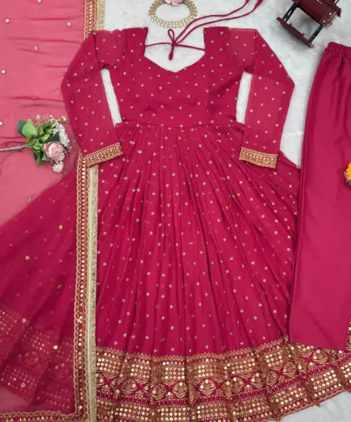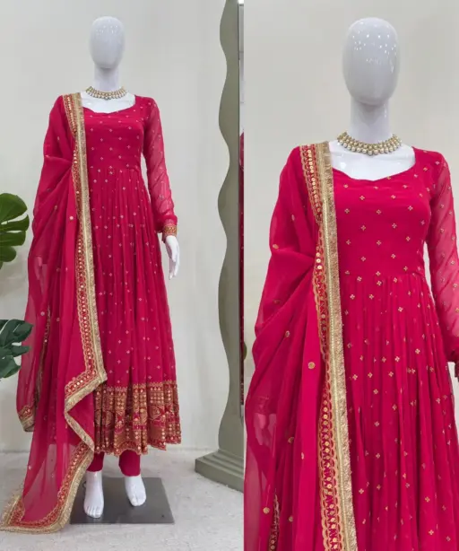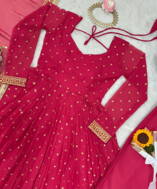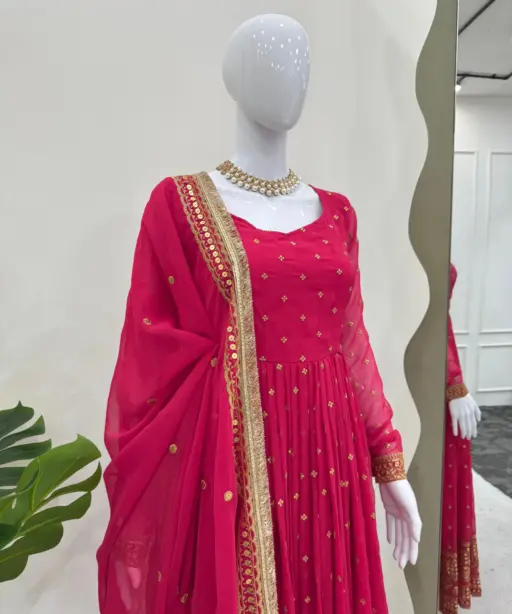 | Dupatta | Faux Georgette, Work Thread with 9mm Sequins, Four-side lace border, Length: 2.2 meters |