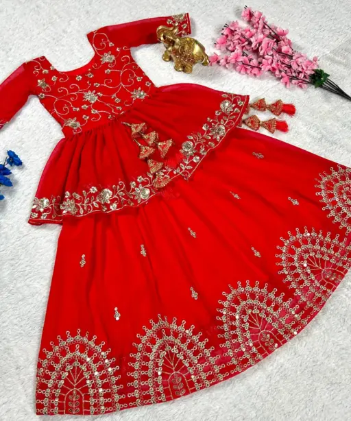 Red Color Designer Kids Lehenga Choli With Heavy Sequince Work Ethnic Kids Lehenga