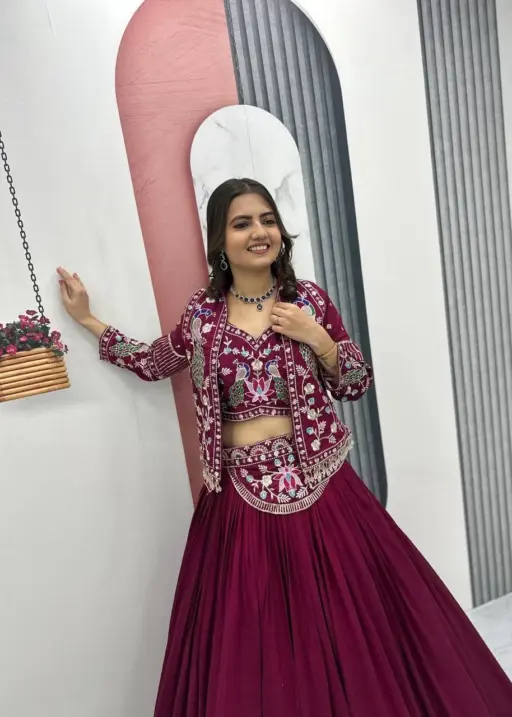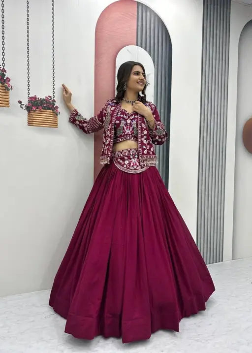 | Lehenga | Vichitra silk Heavy Thread and Sequence Work |