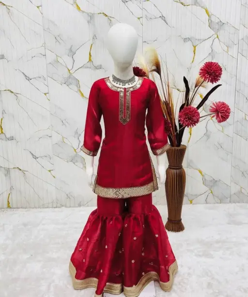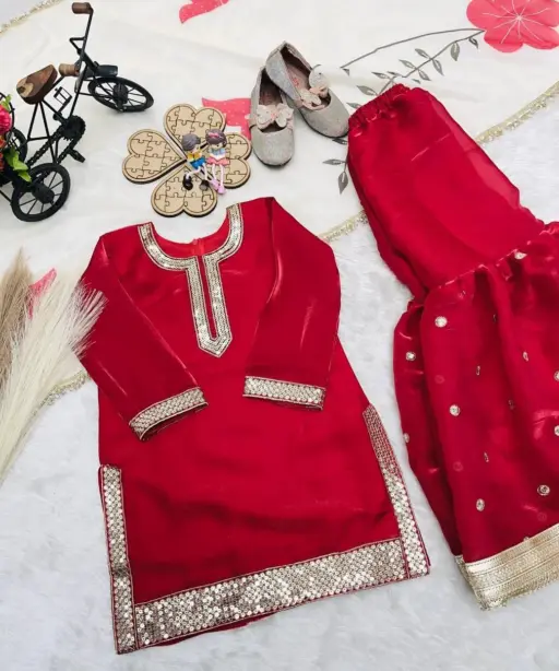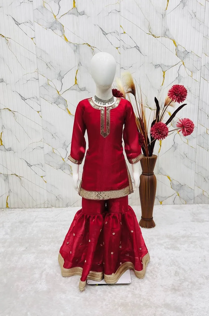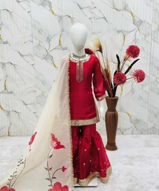 Red Girl Kid Sharara Suit