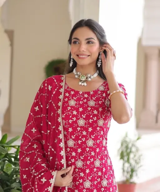 Dupatta: Faux Georgette with Rich Sequins Embroidered work. Length: 2.2 Mtr