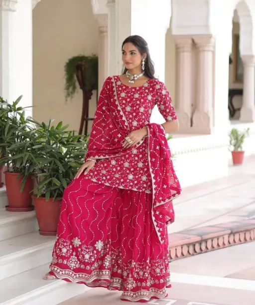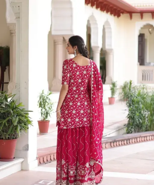 Red Heavy Embroidery Sharara Dress for Wedding Day