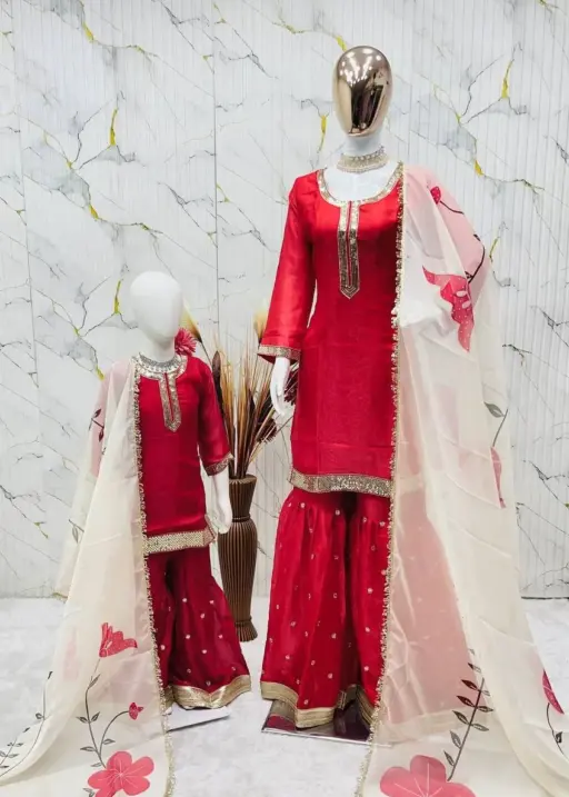 Red Mother Daughter Combo Sharara Salwar Suit