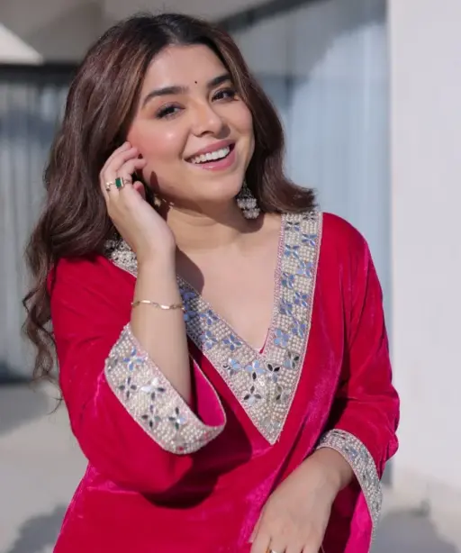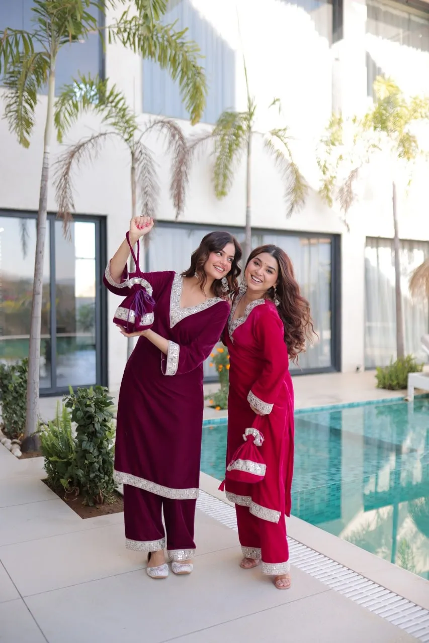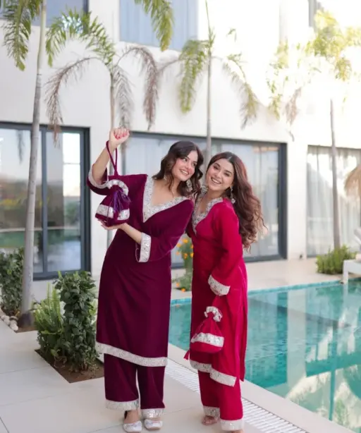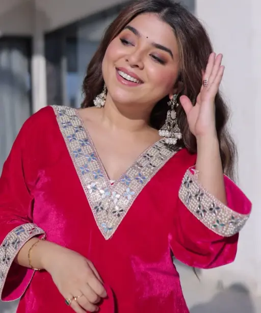 Red Velvet Pakistani Kurti Set