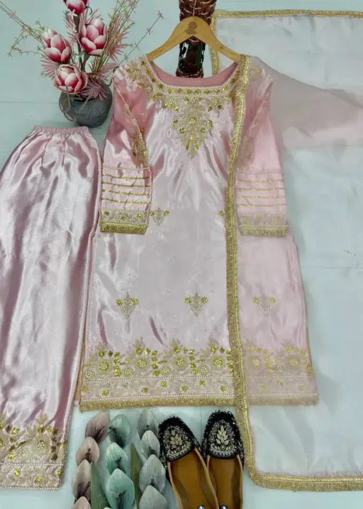 TopHEAVY NATURAL SILK HEAVY CHINE SEQUENCE WORK WITH PERAL MOTI HAND WORK LENGTH: 39 INCHED
