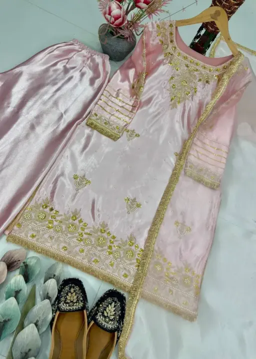 BottomHEAVY NATURAL SILK CHINE SEQUENCE WORK WITH PERAL MOTI HAND WORK LENGTH: 39 INCHED