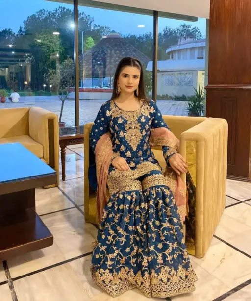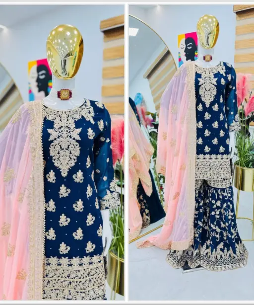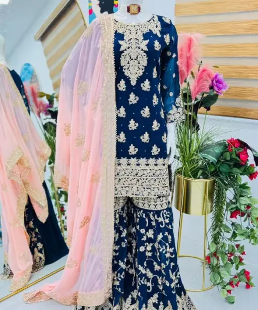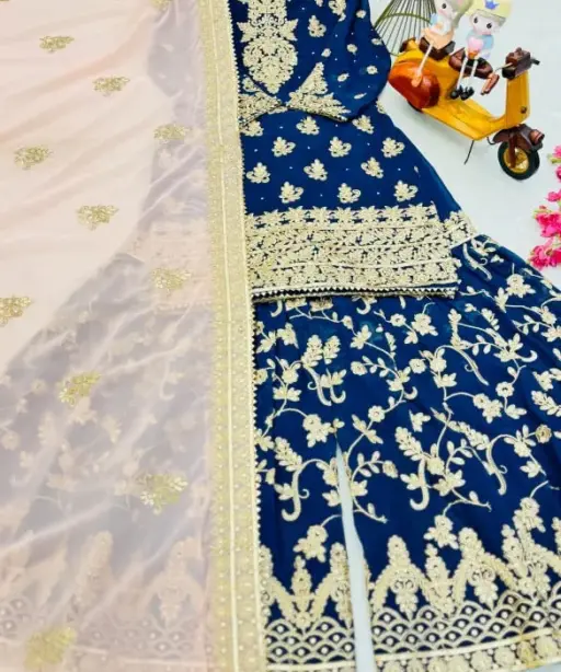 Royal Blue Heavy Embroidery Work Wedding Sharara Salwar Ethnic Suit Viral