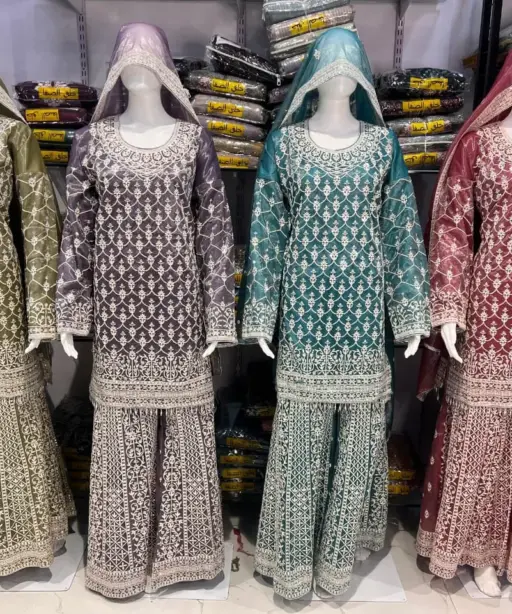 Russian Twill Net Palazzo Wedding Wear Pakistani Suit