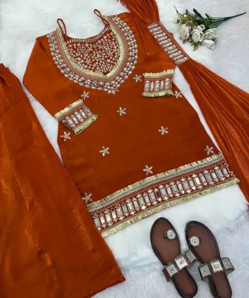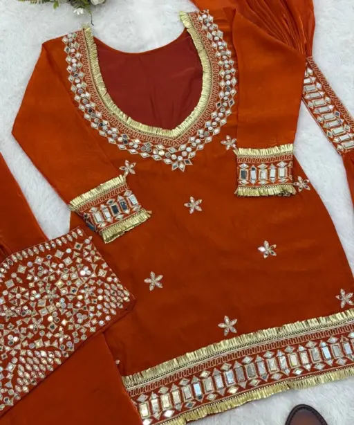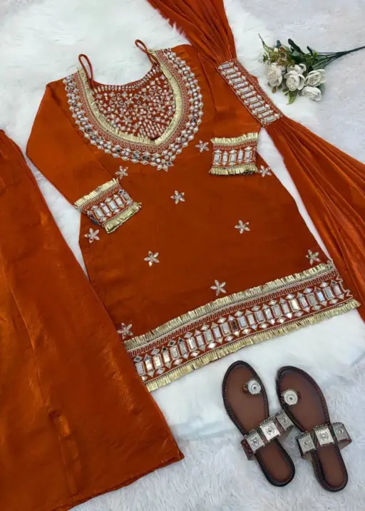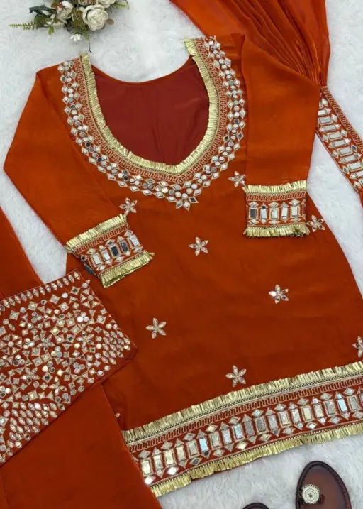 Catalog Name: Rust 4 Piece Blouse Suit with Salwar