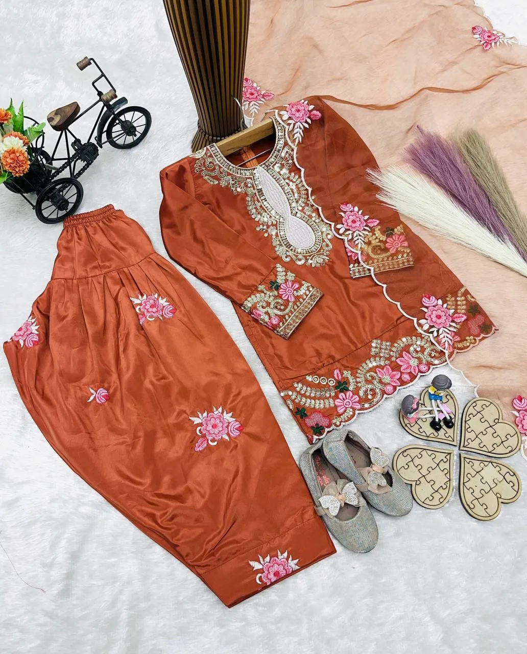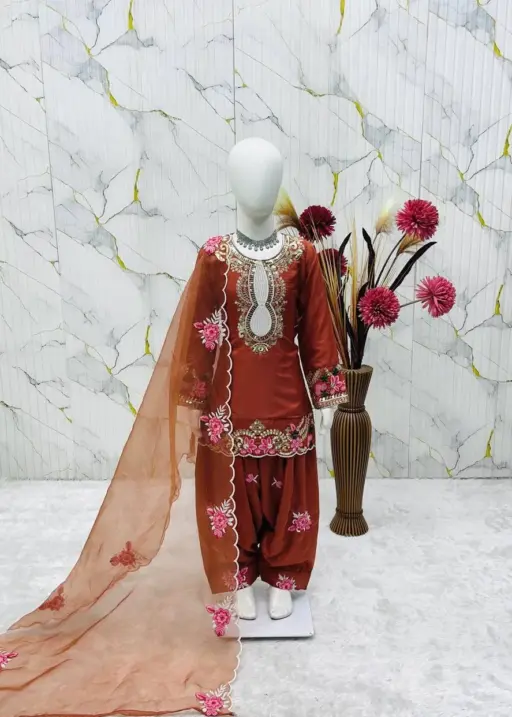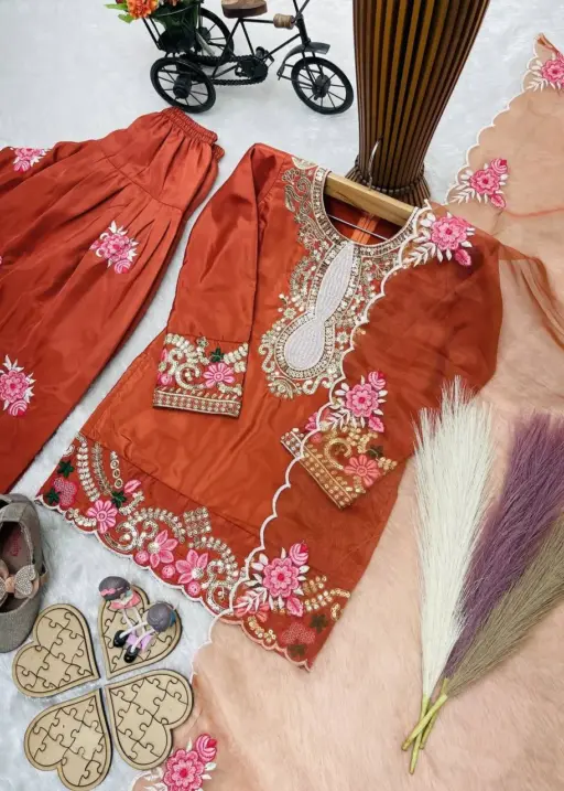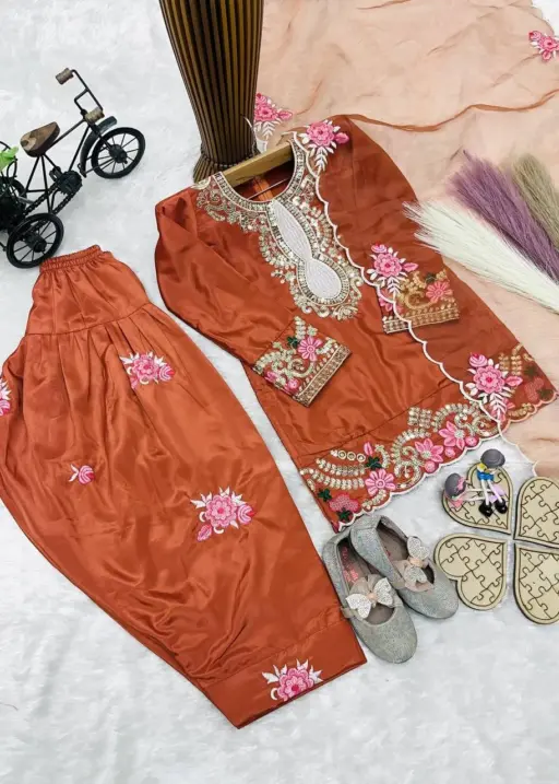 Rust Color small kids Salwar Suit for Wedding