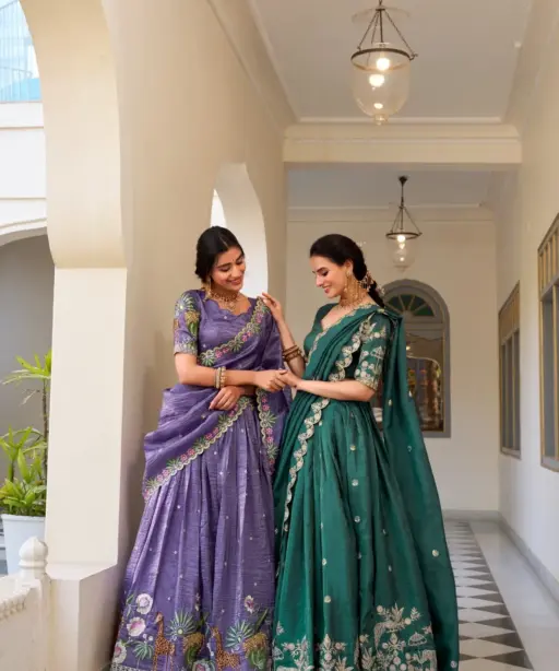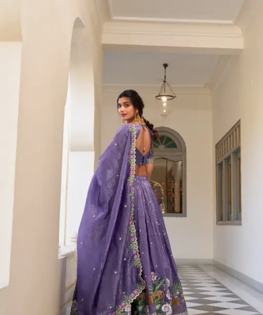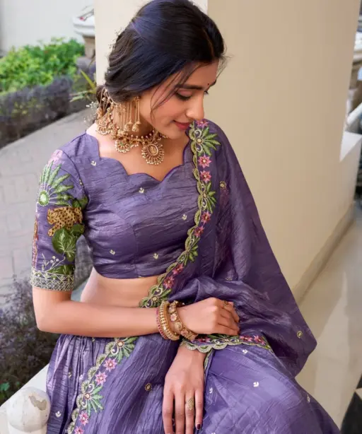 | Lehenga | Gold Crush with Sequins & Thread Embroidery Work, 3.50 Meter Flair, Length: 41, Waist Supported up to 42, Stitched with Canvas & Can Can, Inner: Silk, Closure: Drawstring with Zip |