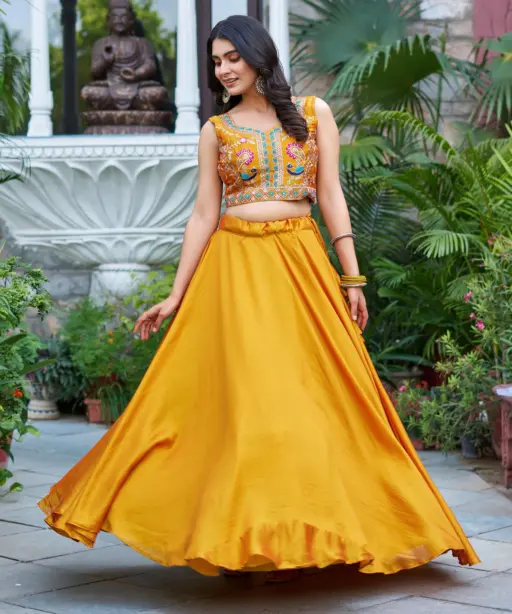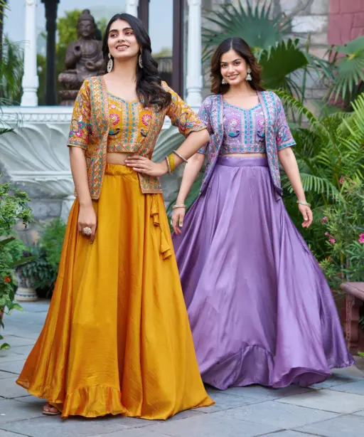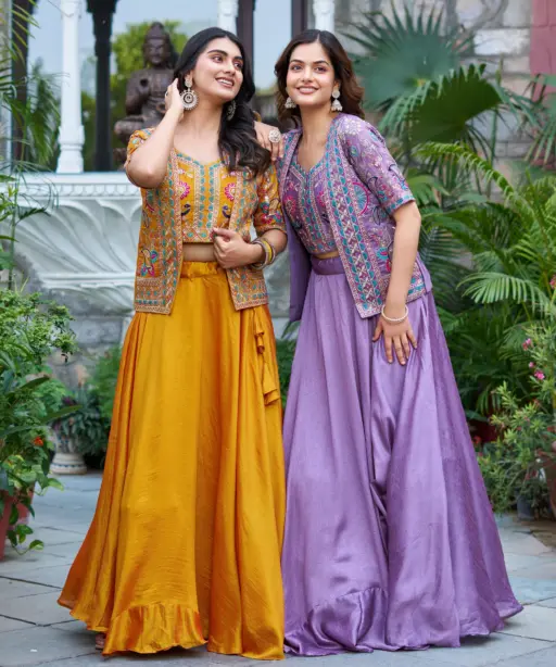 | Lehenga | Pure Vichitra with micro cotton inner, 8.5 mtr flair, attached canvas and cancan |
