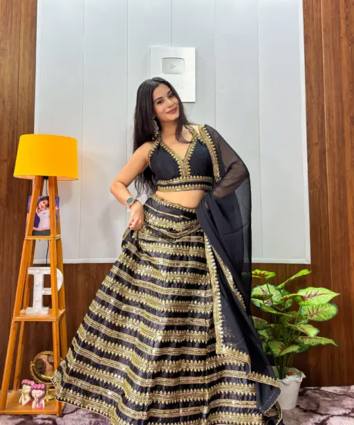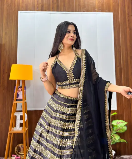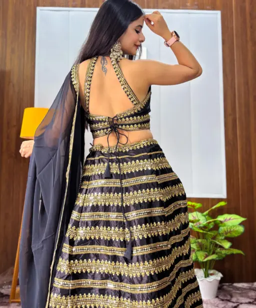 Sangeet Wear Black Lehenga Choli with Golden Embroidery