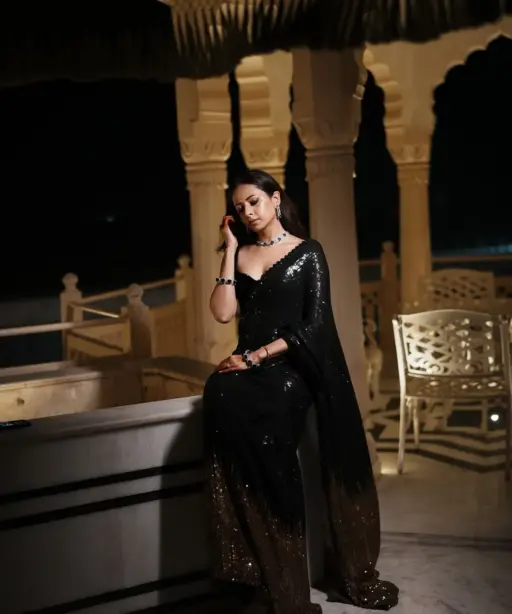 Sargun Mehta Inspired Black Sequence Saree