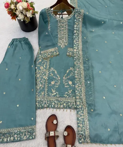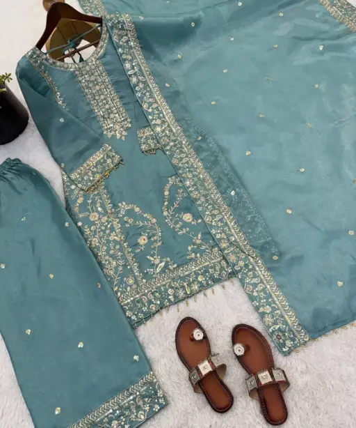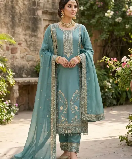 Sea Green Pakistani Pant Suit Set