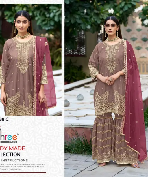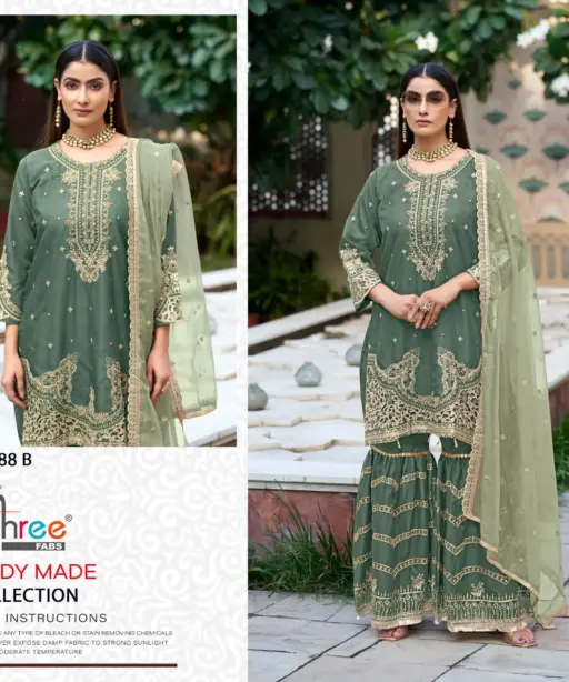 Shree Fabs Readymade Pakistani Organza Sharara Salwar Suit R1288