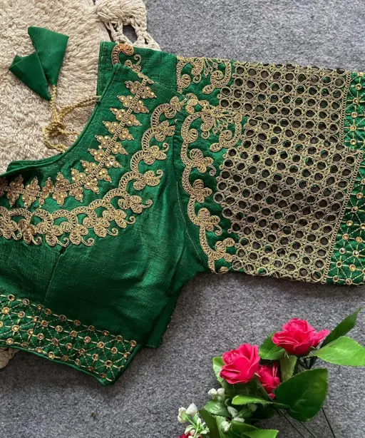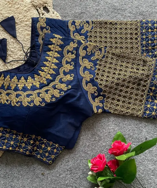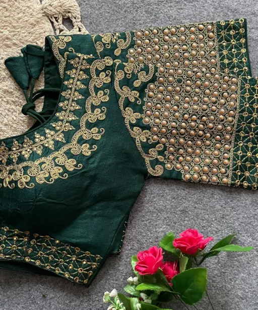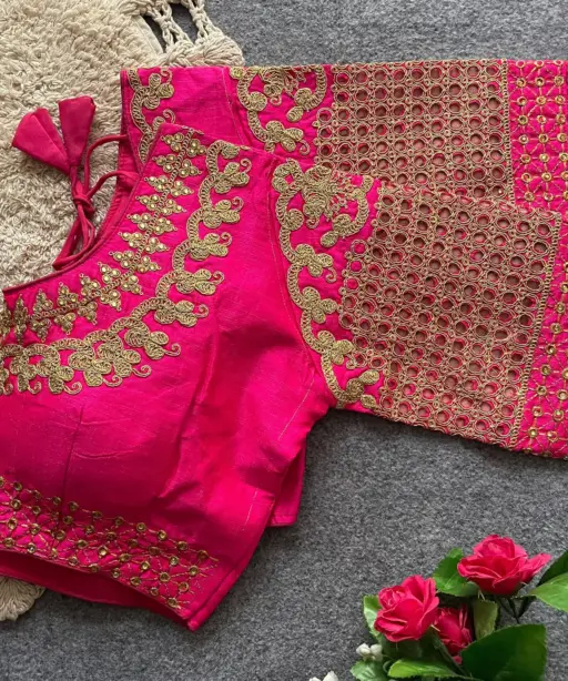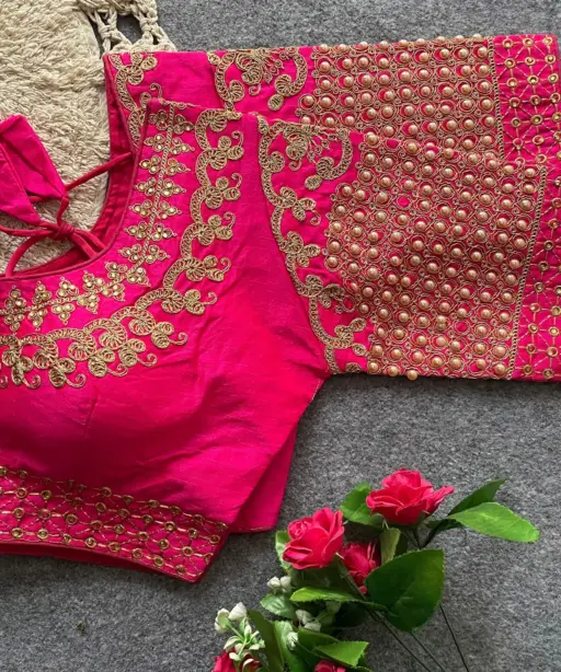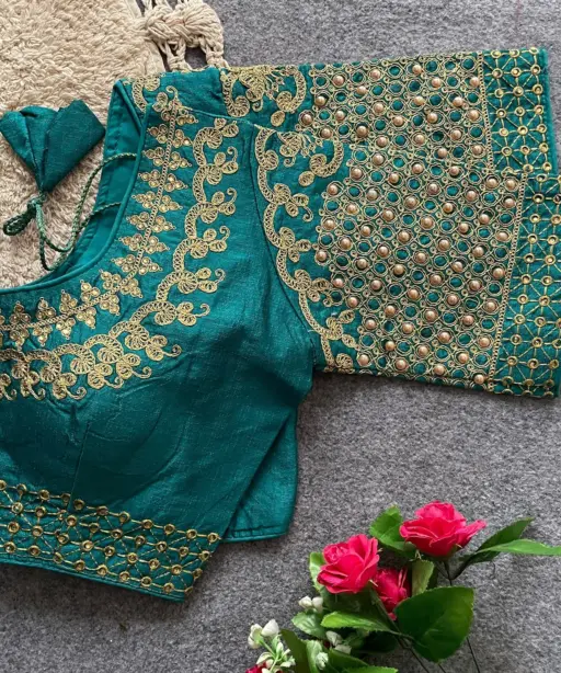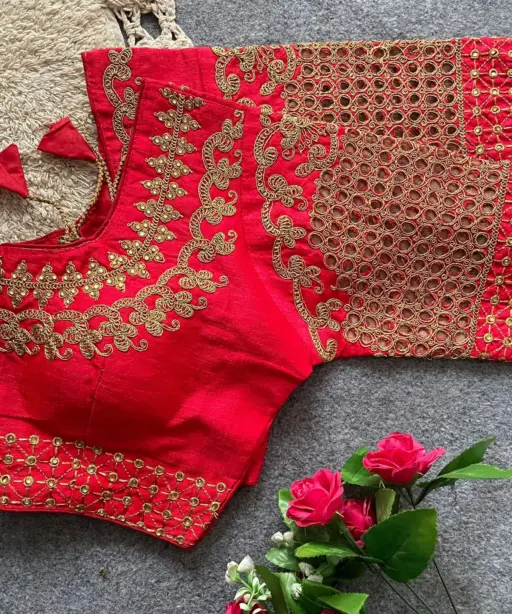 | Blouse | Heavy Embroidery Work, Bridal Baraat Design, Heavy Stitching, Soft Padded, Front Open Style with Handmade Hooks (Plus Size 38” Ready, Alter up to 40”) |