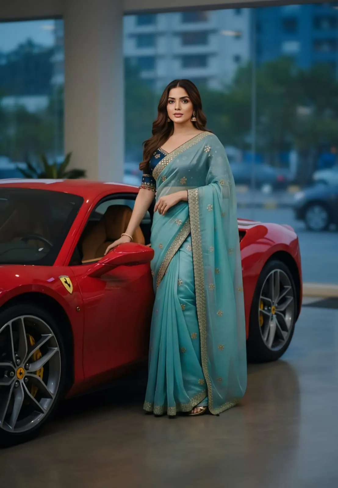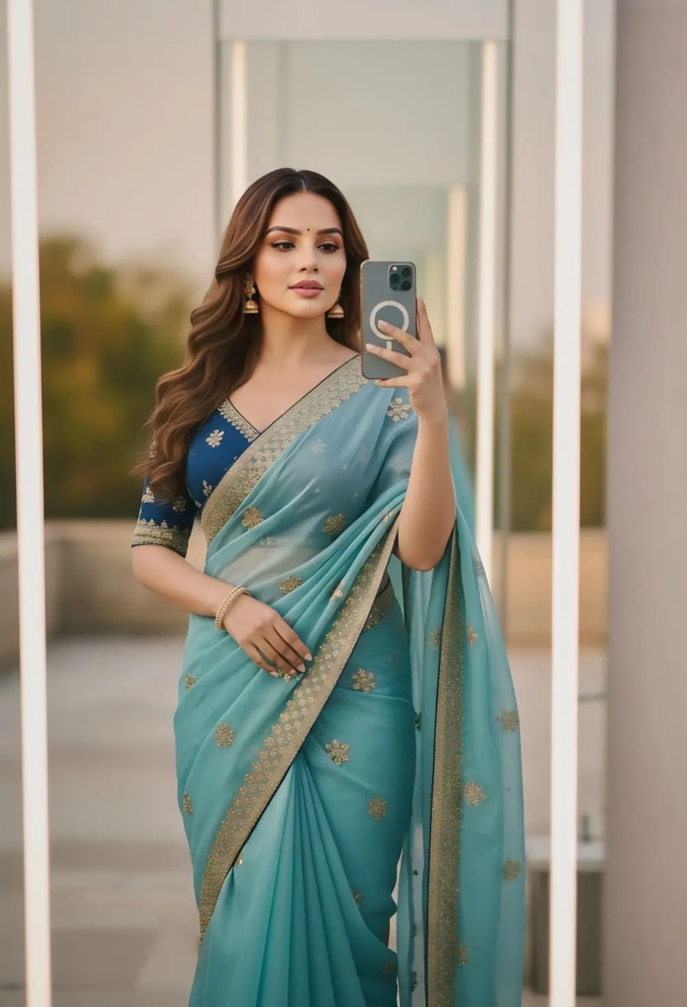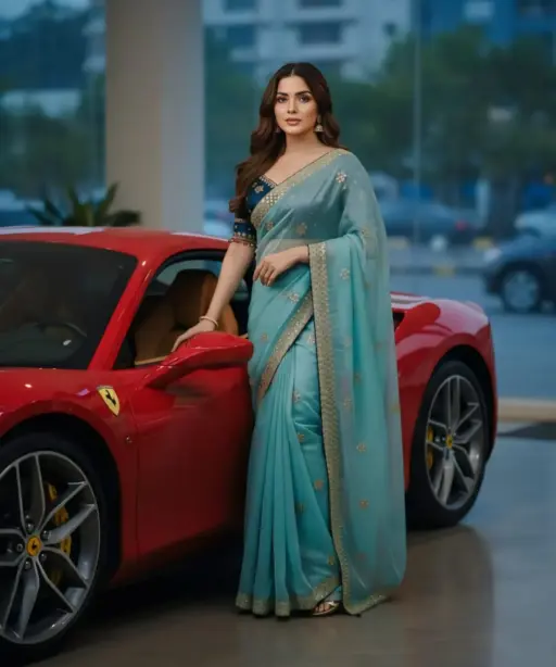 Sky Blue Embroidery Saree with Readymade Blouse