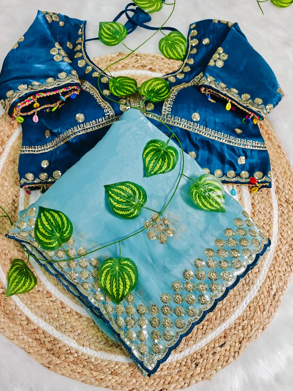 Blousefull stitched beautiful contrast colour multi and sequence embroidery work full body and sleeves with beautiful lace. (Size 38 upto 42)