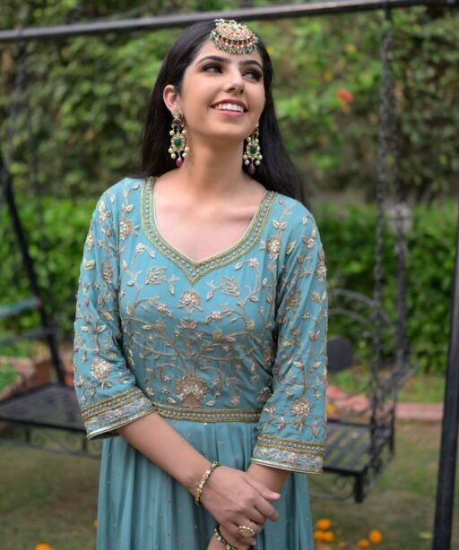 | Top | Heavy Faux Georgette WithHeavy Embroidery Thread & sequence Work 3 Meter Flair |