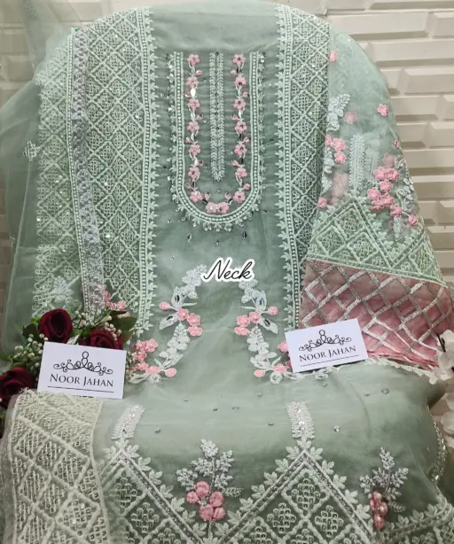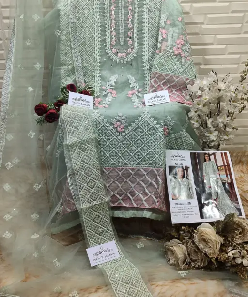 | Top | Organza Fabric with Heavy Embroidery & Khatli Work (Semi-Stitched) |